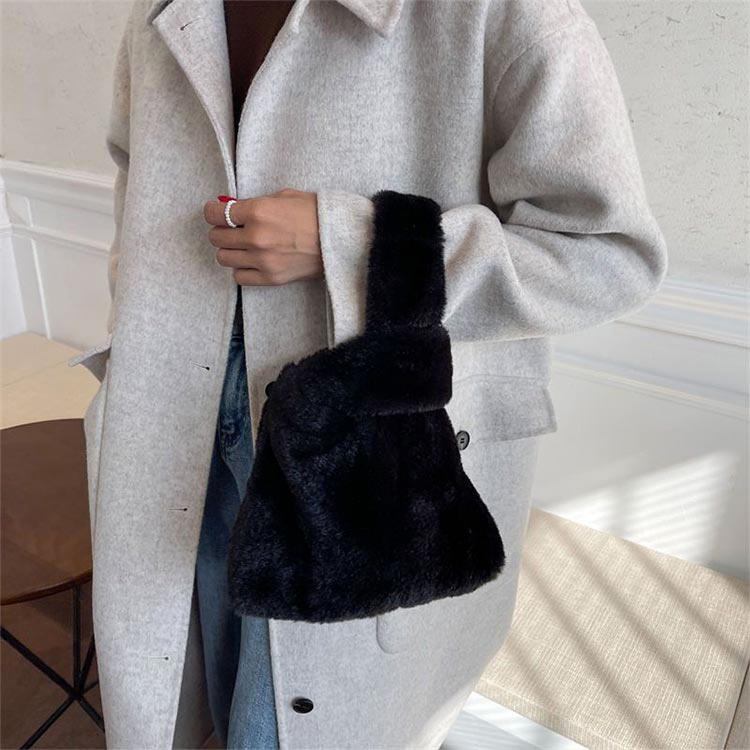 25.5*19*7cm もこもこ可愛い エコバッグ ファー コンパクト マグネットボタンバッグ 小物 ブランド雑貨 バッグ エコバッグ