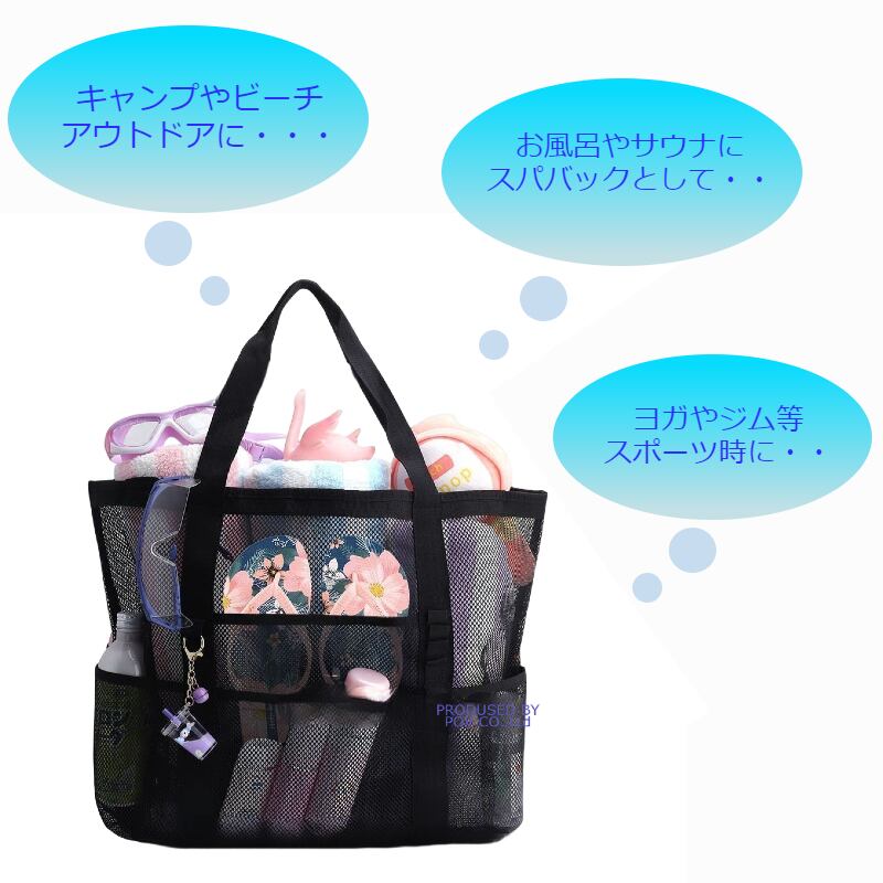 ビーチバッグ メッシュバッグ レジャー アウトドア プールバッグ スパ サウナ ヨガ 男女兼用 旅行