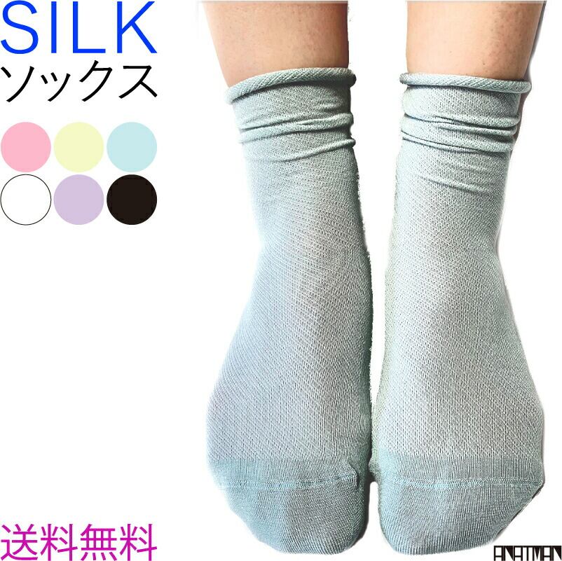 ソックス シルク 靴下 レディース シルク素材 柔らかい さらさら 薄手 くつ下 クルー丈 くつした 重ね履き サンダル 履きやすい 可愛い 人気 オススメ くすみカラー おしゃれ