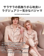 シルクタッチサテンパジャマは表面がツルツル、 内側はサラサラの肌触りで着心地も抜群です。
