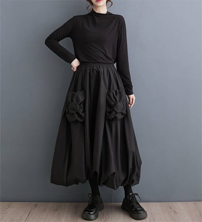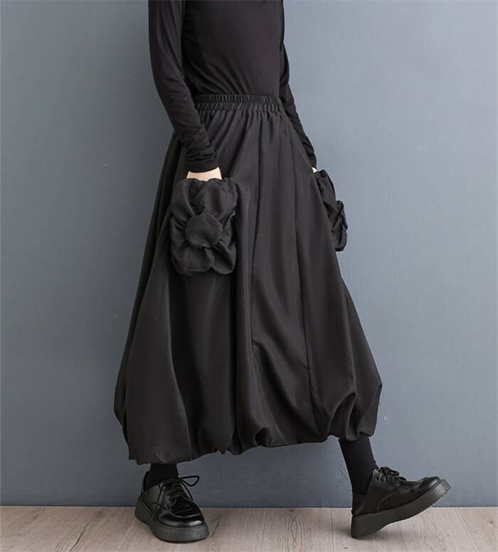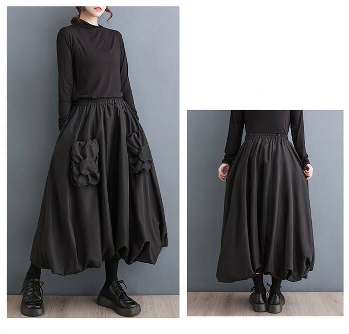 バルーンスカート スカート ロングスカート レディース Aライン バルーン 可愛い 春 秋 冬 ボトムス マキシ丈 Aラインスカート ゆったり フレア ウエストゴム ポケット付き 膝下 ひざ下 大人