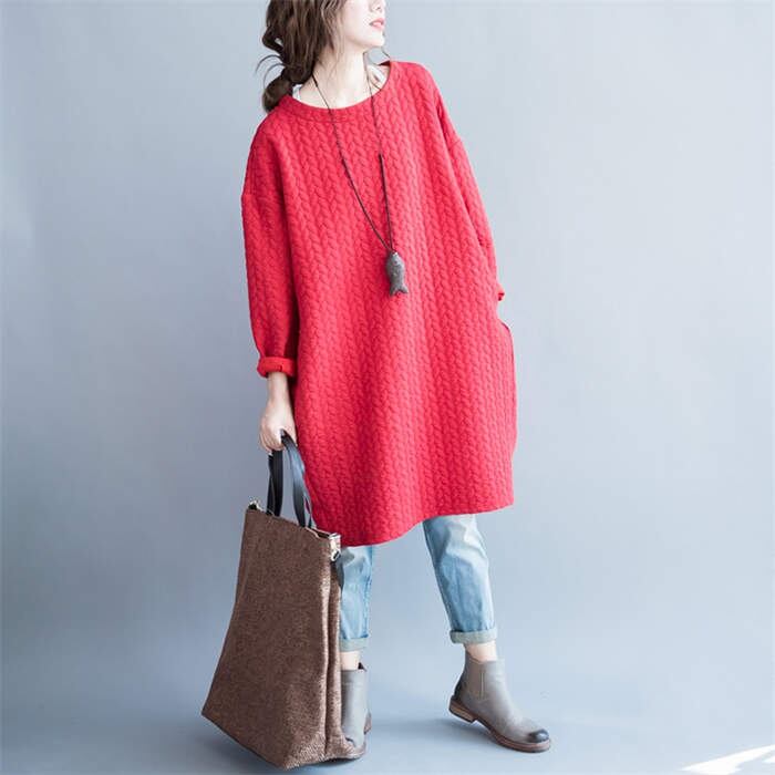 ワンピース レディース 春 秋 コクーンワンピース コクーン型 大人 ゆるっと ゆったり 体型隠し 体型カバー 長袖 クルーネック 膝丈 ひざ丈 おしゃれ カジュアル きれいめ バルーン グレー レッ