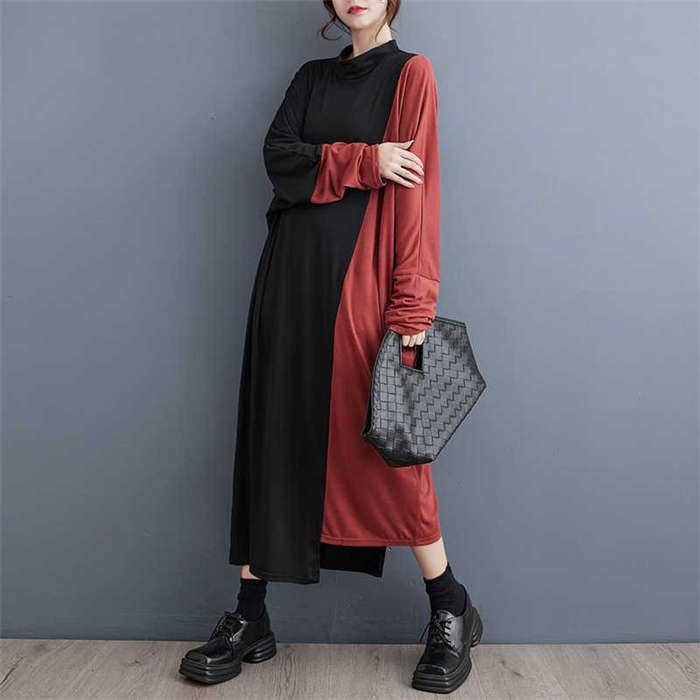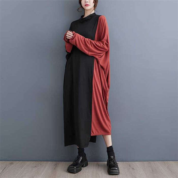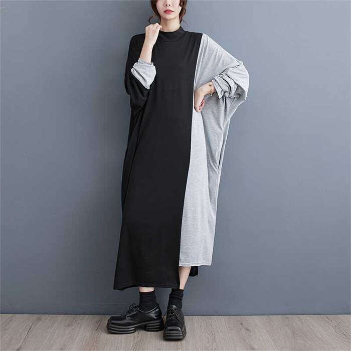 品よく女性らしい配色ロングワンピ♪ たワンピース 42%OffKey8: ブラック×グレー ブラック×オレンジ