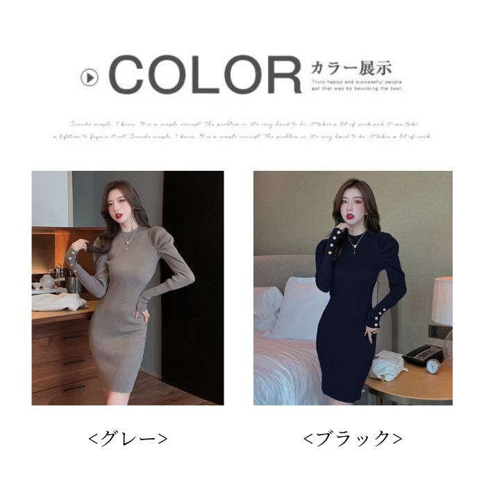 ニットワンピース レディース 姫系ワンピース タイトワンピース 秋冬 リブニット ミニ丈 タイトニット パフスリーブ 膝上 長袖 ストレッチ 大人 重ね着 ニット ひざ丈 無地 秋冬 オフィス シンプ