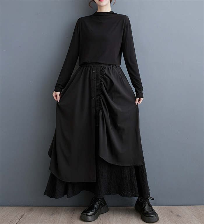 アシンメトリースカート レディース モード系 ロングスカート 重ね着 大人 楽ちん とらみレディースファッション ボトムス スカート