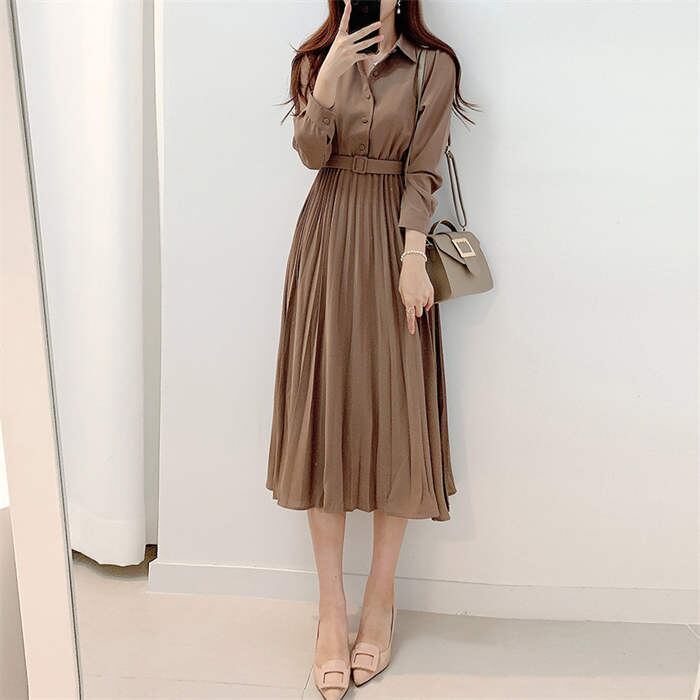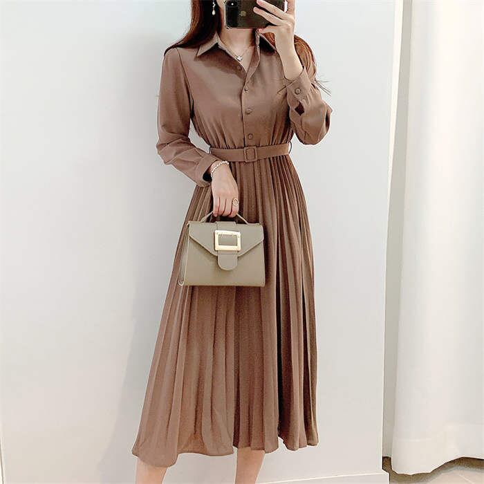 上品見えするプリーツワンピース 1枚ワンピース 42%OffKey0: コーヒー ベージュ Key1: S M L XL