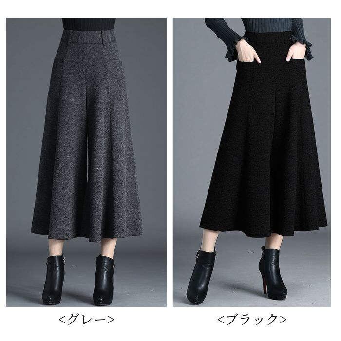 あったかガウチョパンツ楽なのにスタイルがキレイ見えする大人ワイドパンツ♪レディースファッション ボトムス パンツ