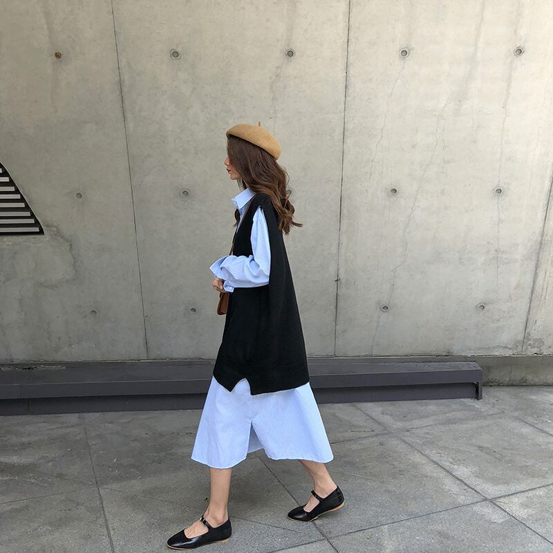 ニットベスト レディース ベスト 深Vネック ニットノースリーブ無地 シンプル フリー 着回し力体型カバーセーター 着心地 重ね着