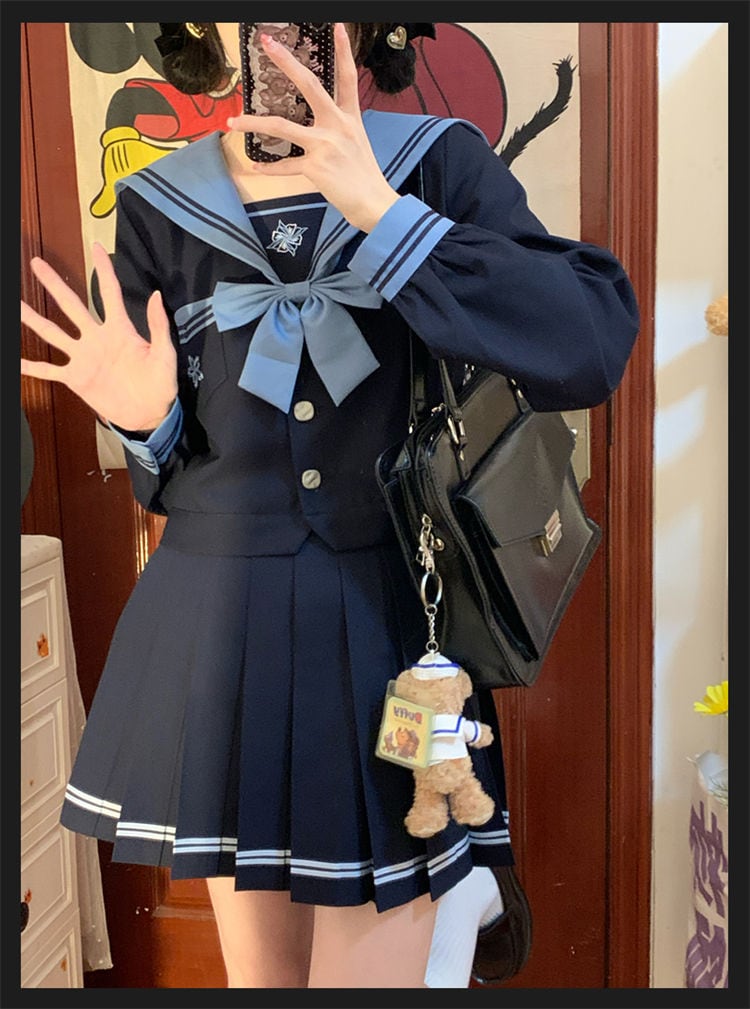 学生服 JK制服 セーラー服 女の子 学生服 セーラー服 続々入荷中vertical-key: 水色襟長袖セット 水色襟短袖セット 灰色襟長袖セット 灰色襟短袖セット 紺色襟長袖セット 紺色襟短袖セット horizontal-key: XS(ウエスト58~62cm) S(ウエスト60~64cm) M(ウエスト64~68cm) L(ウエスト68~72cm) XL(ウエスト72~76cm) XXL(ウエスト78~82cm)