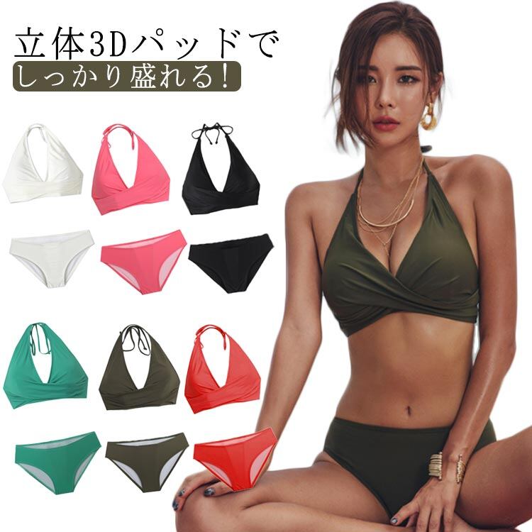 ビキニ レディース 大人 水着セット 春夏 黒 春 大きい 無地 水着 ビキニセット 夏 女性 ママ用 海 プール スポーツ クロス