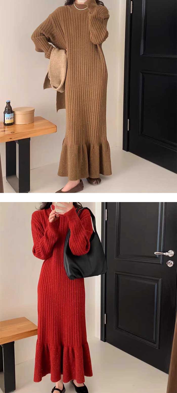 ワンピース レディース ニットワンピース ニットセーター ロングセーター ロングワンピース ニット 長袖 春秋 マーメイドスカート スリット カシミヤ風 こなれ感 着?せ 高見え 体型カバー 普段着