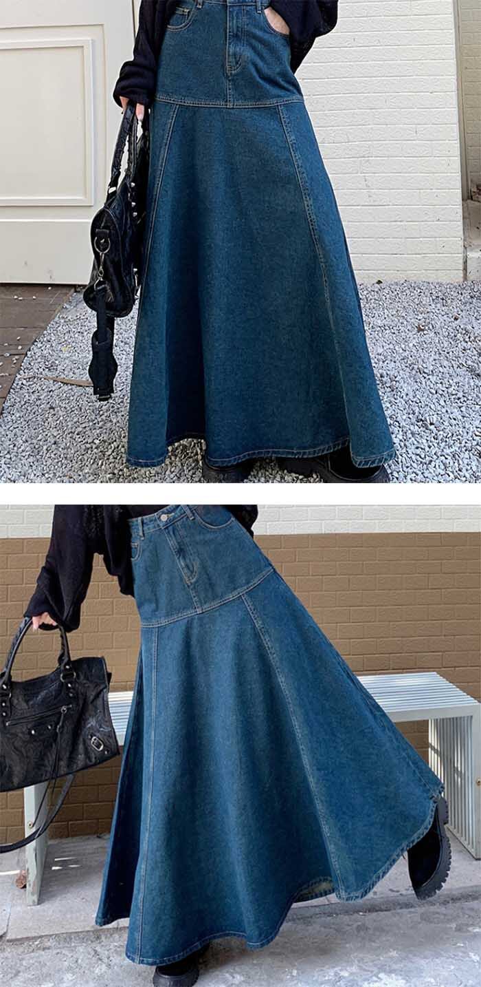 デニムスカート ロング 春 ボトムス レディースファッション 人気Key0: XS S M L XL
