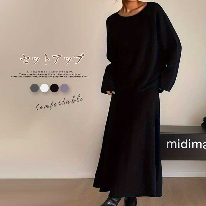 キーワード ニットセットアップ レディース スカート セットアップ タイトスカート ミモレ丈 秋 冬 セーター 長袖 ニットソー レディース ニットセーター オシャレ オフィス 着痩せ 長袖 フレア キレイめ 可愛い ゆったり カジュアル 通勤 30代 40代 50代