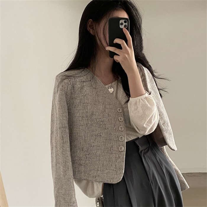 ツイード ジャケット レディース 春 秋 スーツジャケット ショート丈 ノーカラー フォーマル ツイード スーツ カーディガン ノーカラー 春 秋 着痩せ 体型カバー シンプル カジュアル