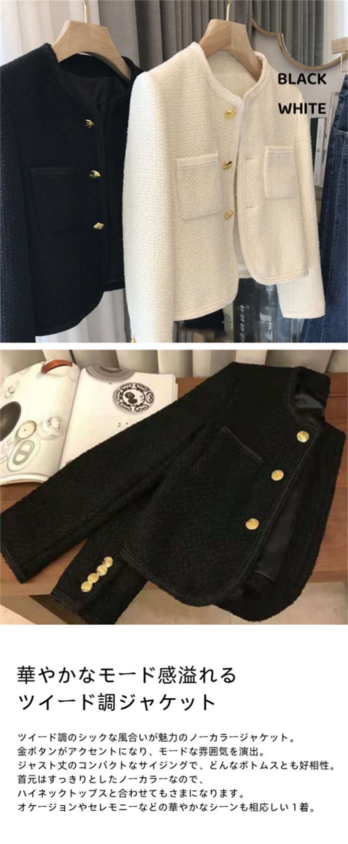 Tweed jacket 春秋のオトナレディースファッション お得なセールKey0: S M L XL Key1: ホワイト ブラック