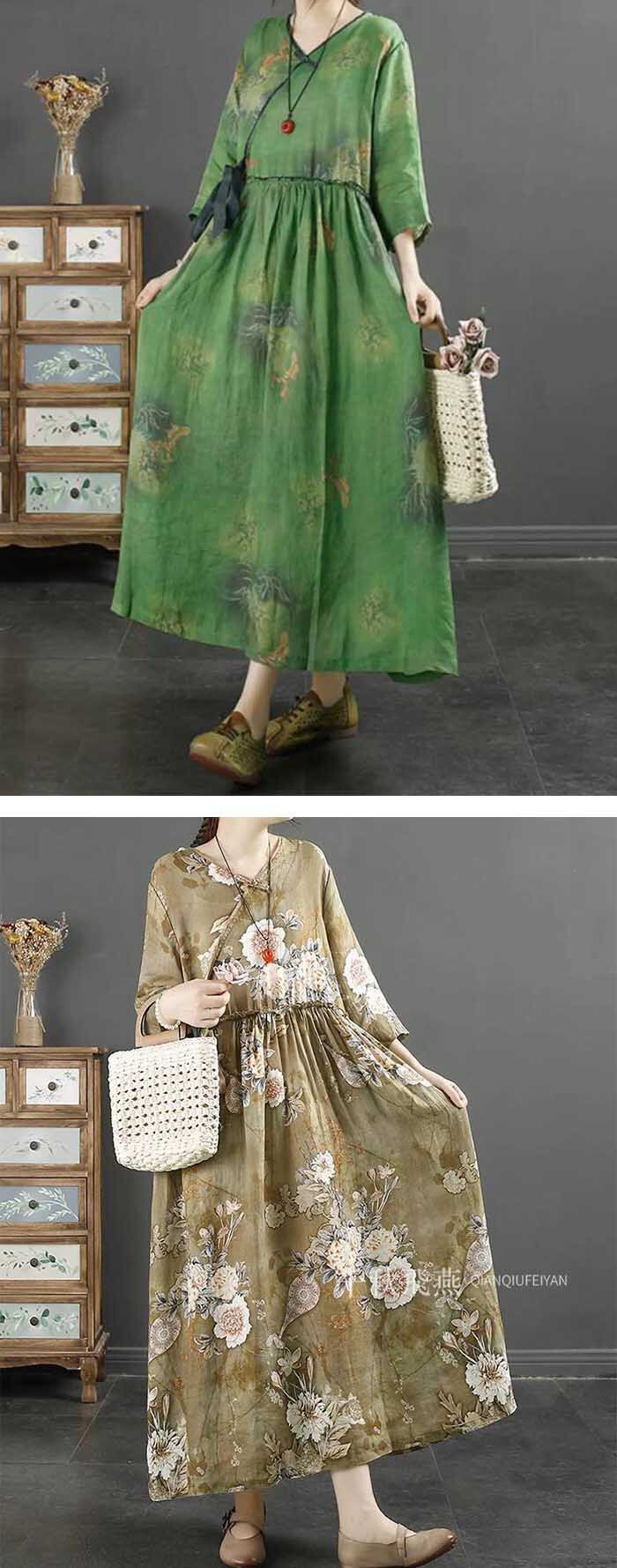 ワンピース 7分袖 きれいめ 春 夏 レディースファッション 割引Key3: M L XL 2XL Key4: ブルー グリーン レッド イエロー