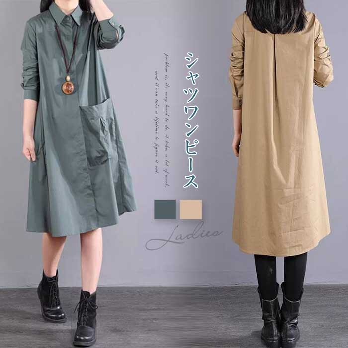 シャツワンピース レディース ワンピーレディースファッション 続々登場Key0: M L XL XXL Key1: グリーン キャメル