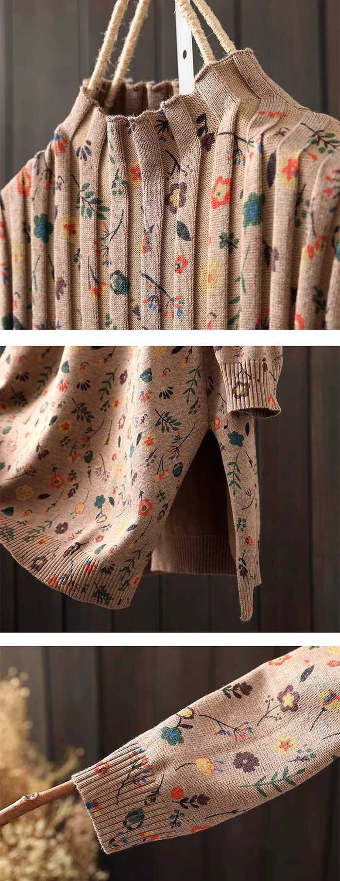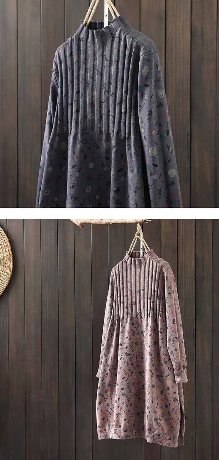 ニットワンピース ワンピース ニットチュニック レディース チュニック 長袖 セーター トップス タートルネック 防寒 リブニット 秋冬 ニットソー 膝丈 膝上 上品 ロングニット オフィス 長袖 春秋 花柄 30代 40代 50代