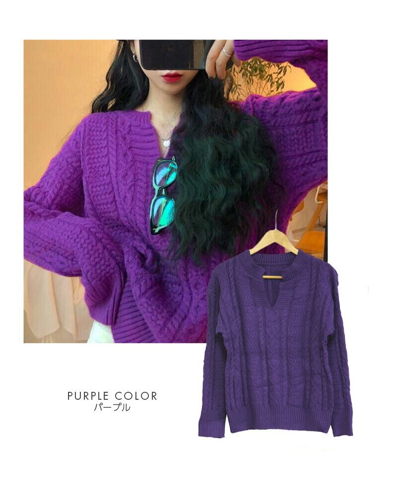 レディース ケーブルニットレディースフレディースファッション お得なセールカラー: アイボリー グリーン パープル イエロー
