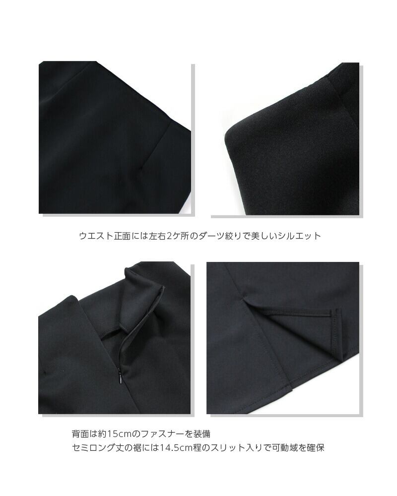 セミロング丈の裾には14.5cm程のスリット入りで可動域を確保