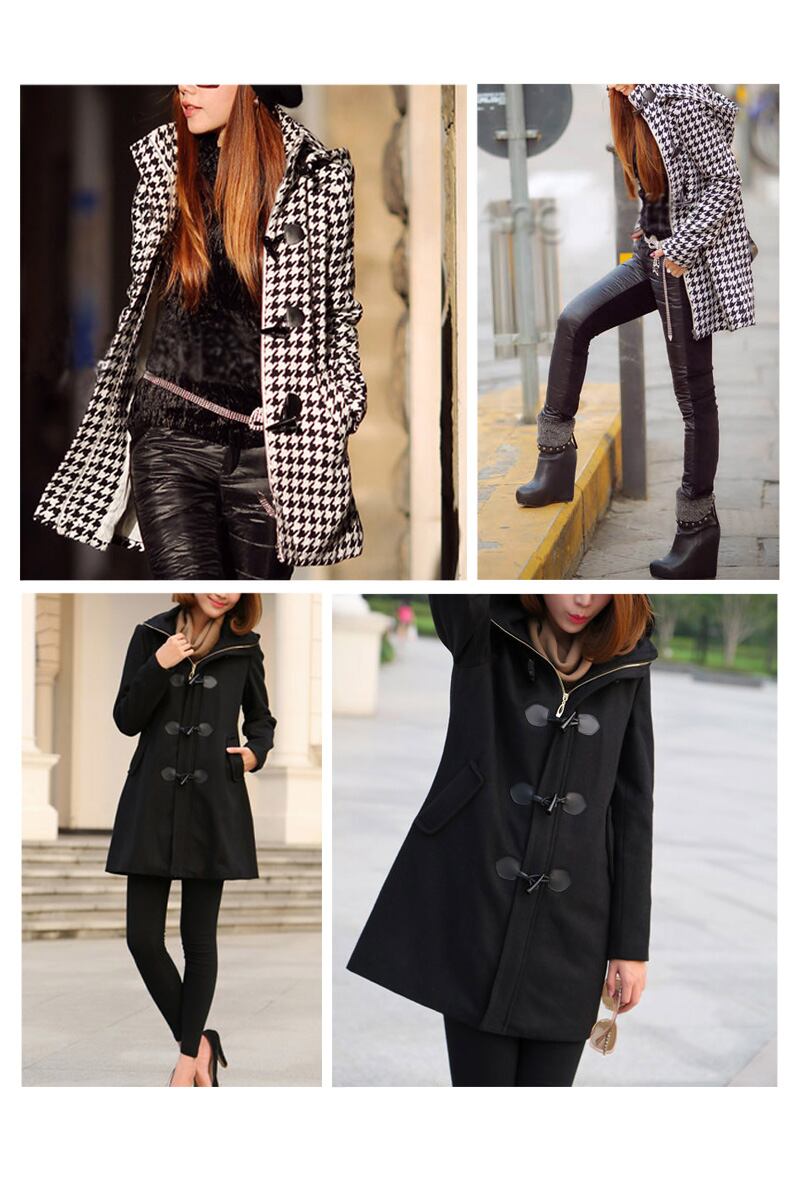 レディース フーデッド ダッフルコートコート ジャケット 豊富な品揃えサイズ: M L XL カラー: 千鳥柄 ブラック