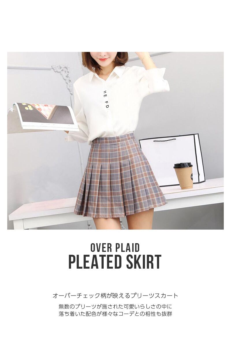 オーバーチェック柄が映えるプリーツスカート