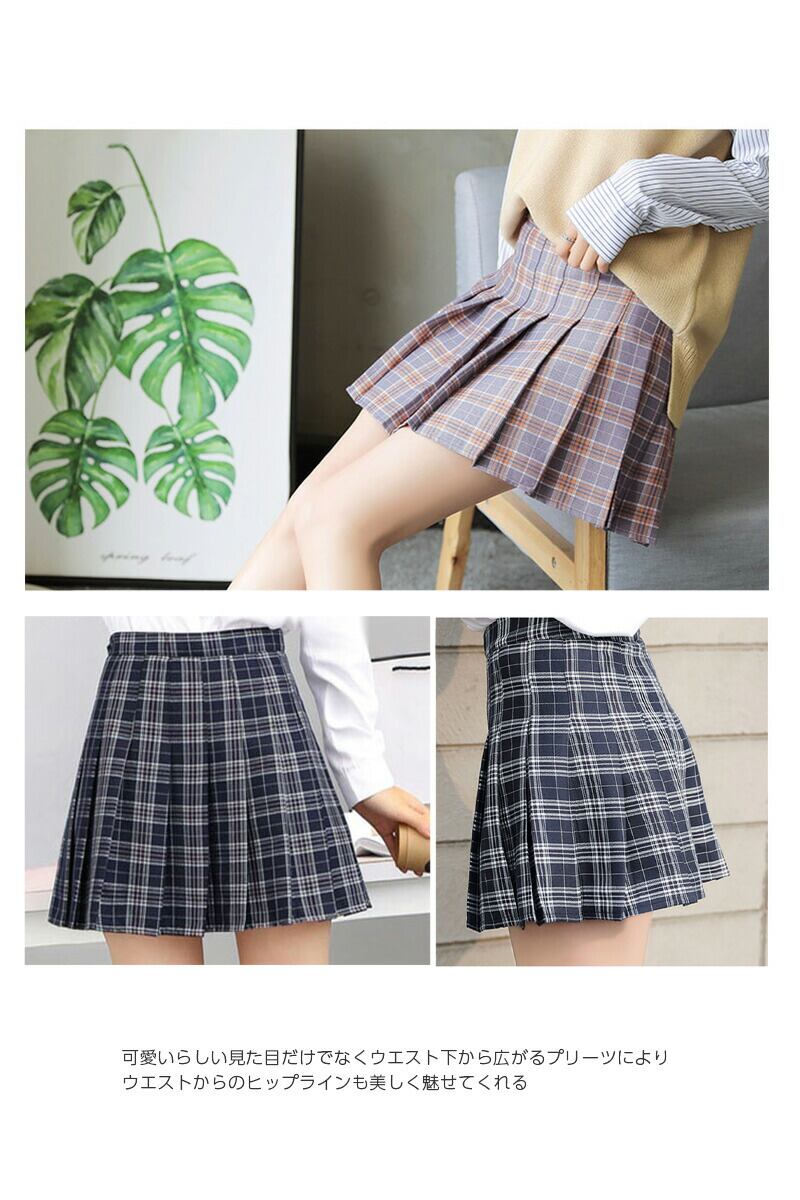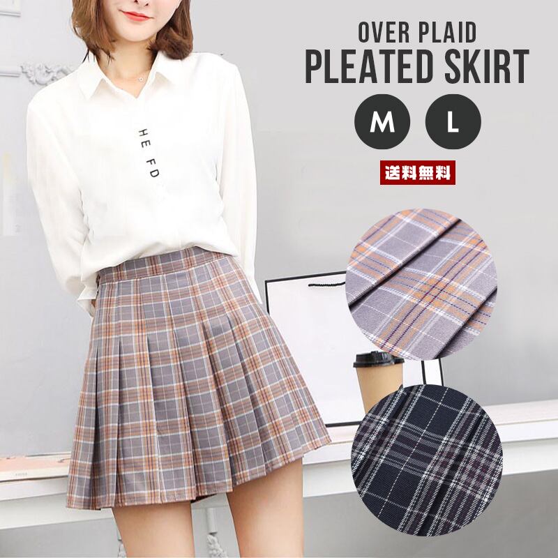 オーバーチェック プリーツ スカートレレディースファッション 特集サイズ: M L カラー: ネイビー グレー