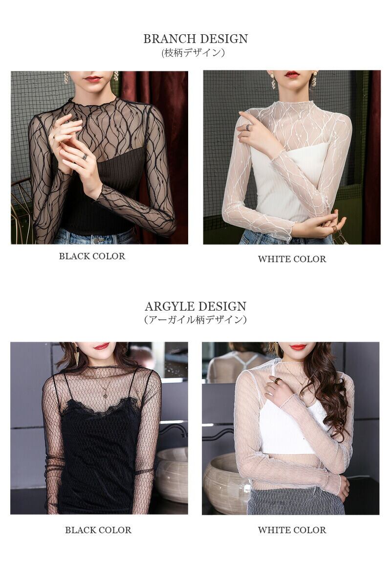 レディース シアー トップスレディースレディースファッション 続々登場カラー: 枝柄デザイン/ブラック 枝柄デザイン/ホワイト アーガイル柄/ブラック アーガイル柄/ホワイト