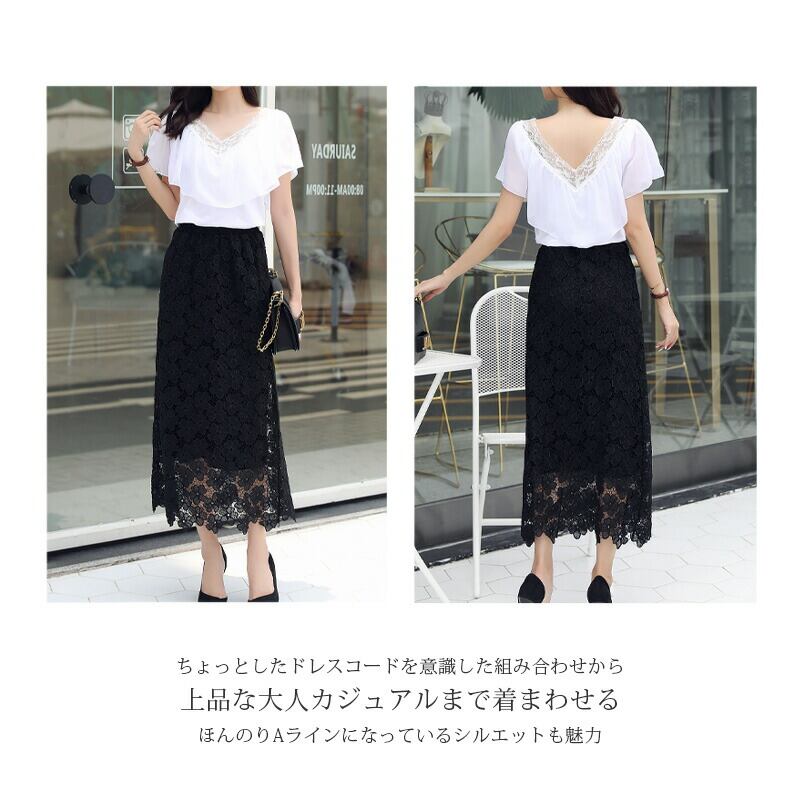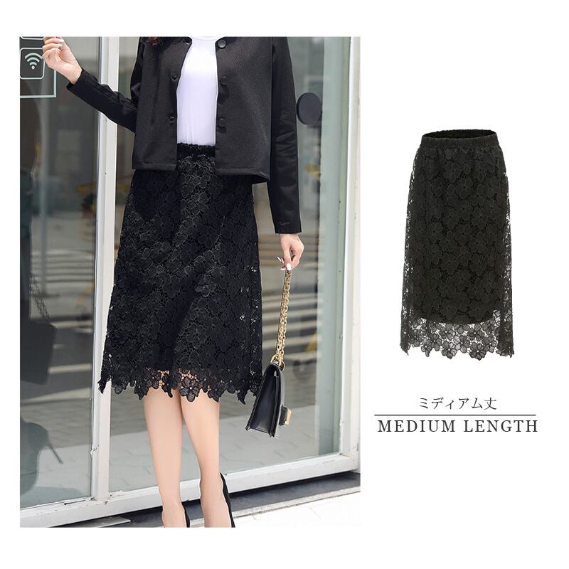 レーススカートレディースファッション ボトムス スカート 通販カラー: ブラック/ロング丈 ブラック/ミディアム丈