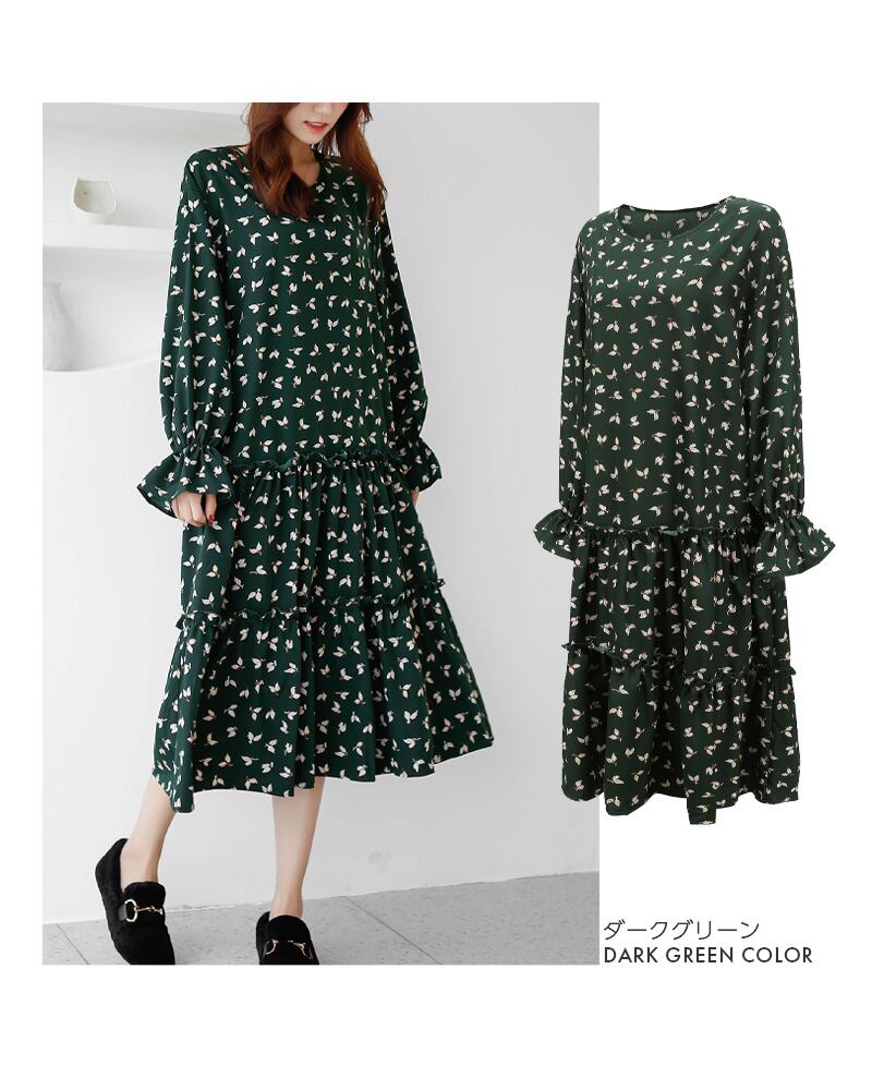 伸縮性ある手首部分で絞られたプリーツと腰部分とひざ丈部分にはフリルの飾り付き