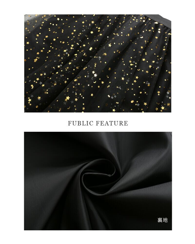 星や月のデコレーションを散りばめた遊び心溢れるスカート