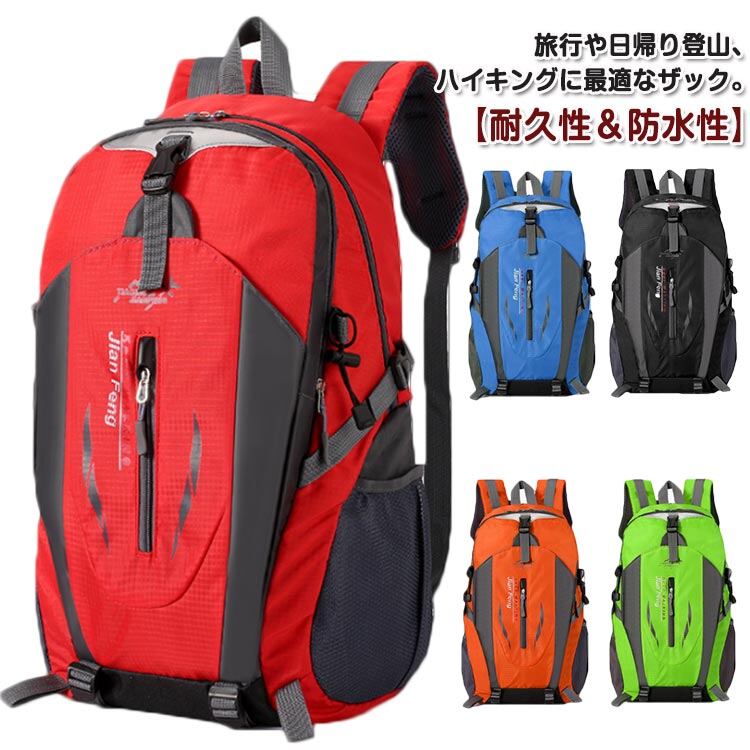登山 40L 撥水 登山リュック レデスポーツ アウトドア 新作カラー: ブラック レッド 蛍光緑 ブルー オレンジ