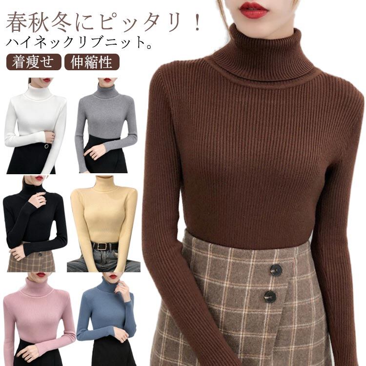 ニット ハイネック ニットセーター タートルネック ニットプルオーバー リブニット セーター 長袖 秋冬 ニットプルオーバー レディース