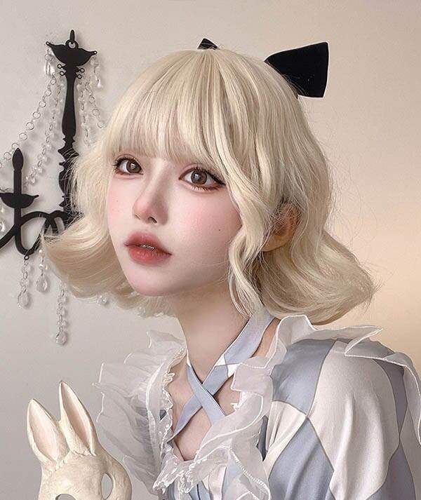 ウィッグ レディース フルウィッグ ショート 巻き髪 金髪 ぱっつん前髪 前髪あり 可愛い かわいい 大人用 コスプレ ロリータ ゴスロリ コスチューム 原宿風 仮装