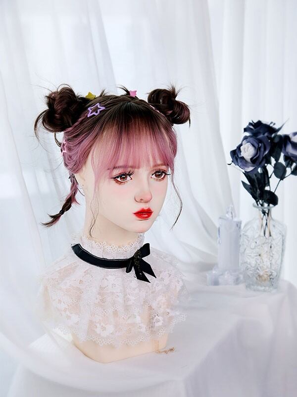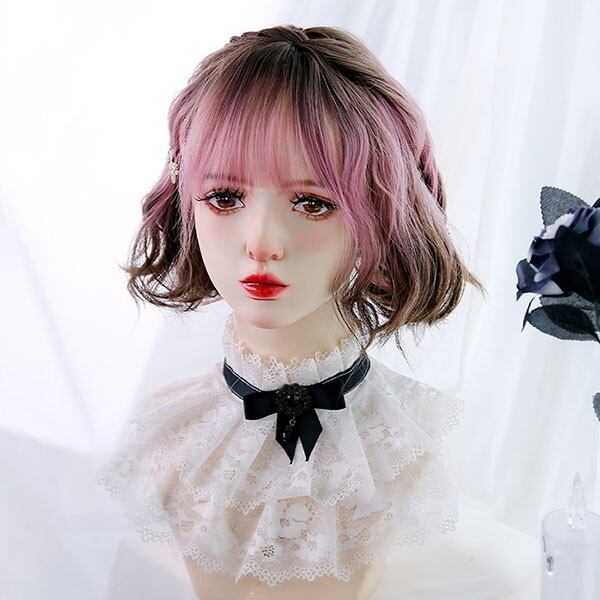ウィッグ レディース フルウィッグ ショート グラデーション 巻き髪 ピンク ぱっつん前髪 可愛い かわいい 大人用 コスプレ ロリータ ゴスロリ コスチューム 原宿風 仮装