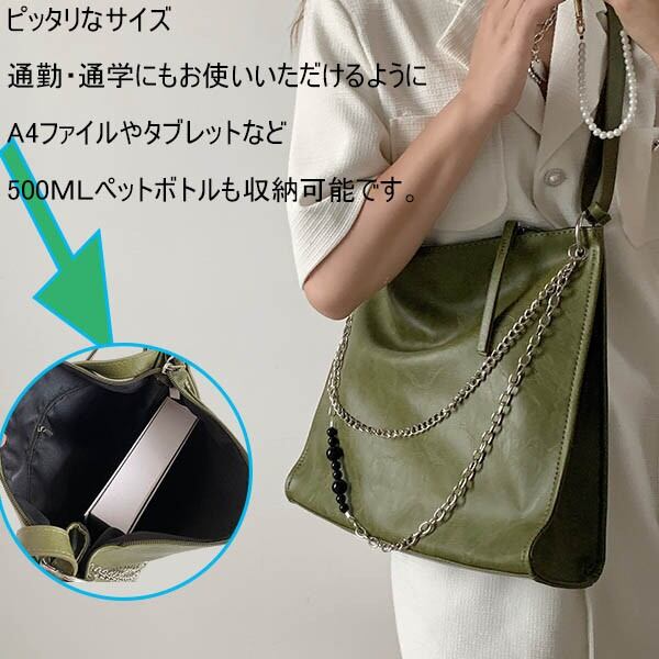 トートバッグ レディース かばん カバン シンプル 斜め掛け 斜めがけ 肩掛け 肩がけ フェイクレザー A4 大容量 マチ広 収納 大人 女性 グリーン