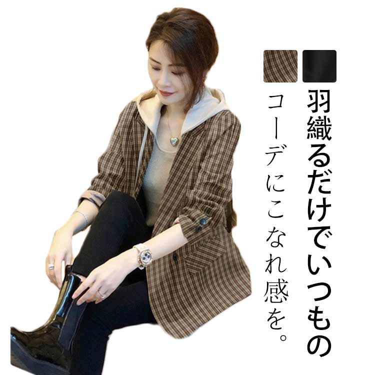 フェイクセット ジャケット コート レディース チェック柄 ゆったりレディースファッション コート ジャケット
