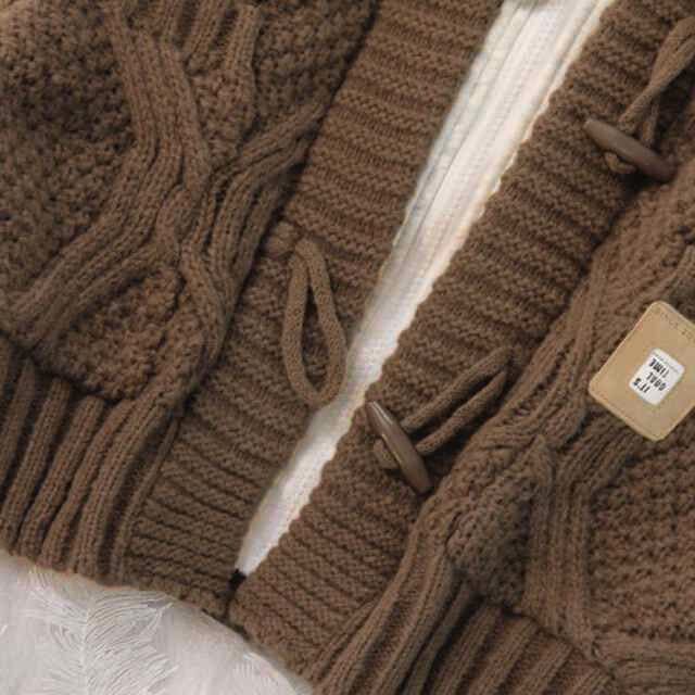 大人可愛いケーブル編みフードカーディガン。