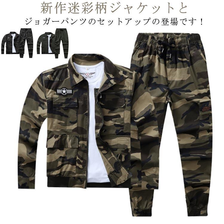 迷彩柄 ジップアップ 上下 セットアップ ジョガーパンツ 上下セット 迷彩 カモフラメンズファッション オーバーオール