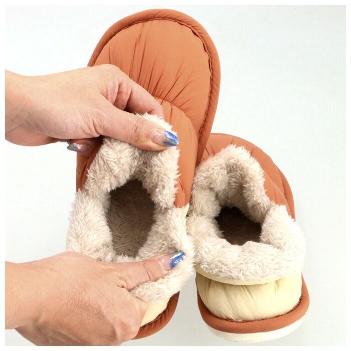 ・ダウン風のデザインがおしゃれなルームシューズ。