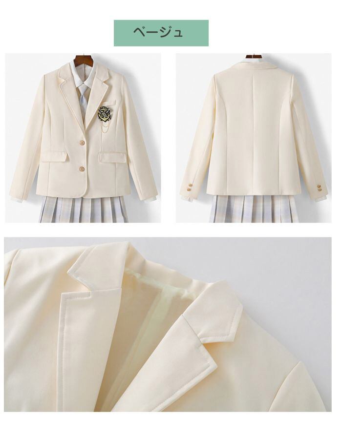黒・紺・茶・灰・白の5色からセレクト!前は二つのゴールドボタンで留めら、胸もとにポケットが施されたジャケット。両サイドにもフラップポケットが付いて、実用性がとても高いです。普段のおしゃれにはもちろん、女装、ガーリー系、森ガール系、JKコスプレ、学園祭、文化祭、イベントなども、さまざまな場合で活躍!気軽に学生時代にタイムスリップして、青春時代を味わえます。素材 ポリエステルカラー ブラック/ベージュ/ネイビー/ブラウン/グレーサイズ S M L XL 2XLセット内容 ブレザー+ワッペン原産国 中国