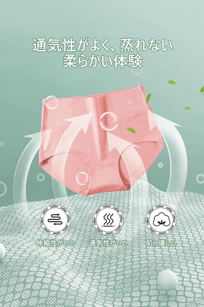 【高級素材 健康を守る】100%オーガニックコットンを採用して、腹まですっぽり包んで込むハイウエストショーツです。品質にこだわり、優しい肌触り、通気性よく、敏感肌や乾燥肌、肌荒れなど誰でも相応しい快適なショーツです。