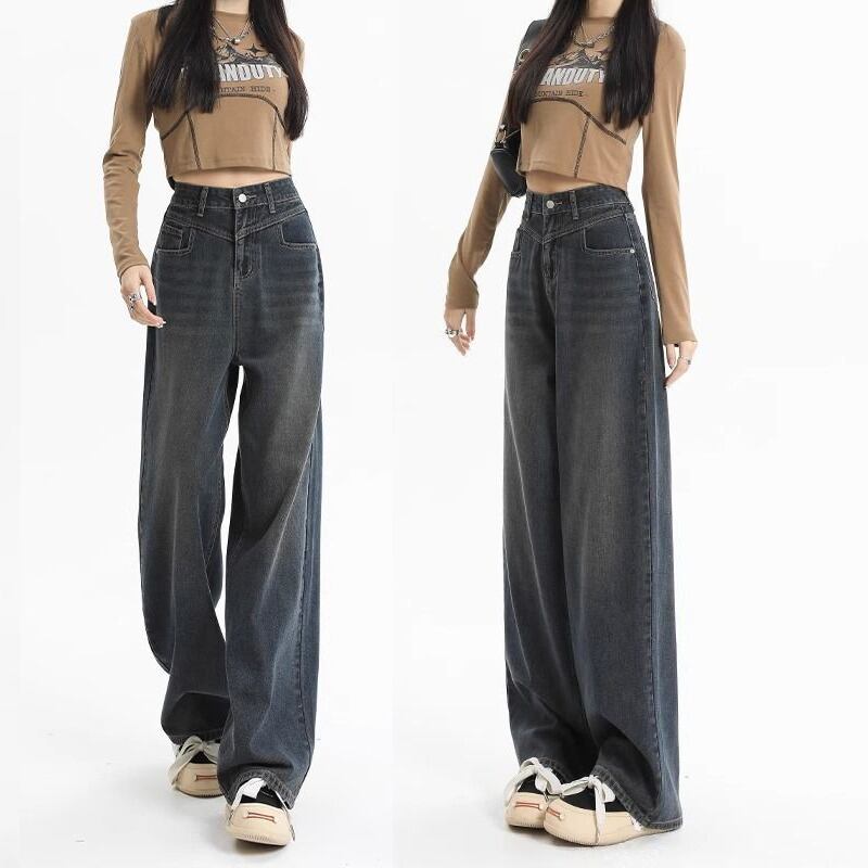 程よいルーズさとハイウエストデザインで脚長&華奢見え効果抜群のワイドストレートジーンズです レディースファッション ボトムス パンツ