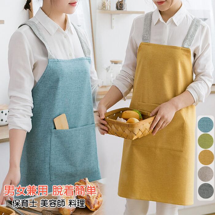 【用途が広い】家事、料理、ガーデニング、料理教室、喫茶店、居酒屋、雑貨屋、お花屋、レストラン、DIY作業など色々なシーンで使えます。主婦さん、飲食店、スーパーの店員、幼稚園、保育園の保育士、美容師などのユニフォームとして、学校の家庭科、絵画、陶芸などをする方の作業着として、どのシーンにも合わせられます。お友達に贈り物、母の日ギフト、敬老の日のプレゼントにもお勧めです。カラー イエロー/グレー/ブルー/グリーン/ベージュサイズ