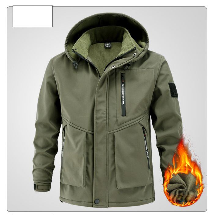 【デザイン】:フード:フードはスタイリングに合わせて取り外し可能。フード部分の口の大きさを調整する紐はついていて、雪が降ってきた時や、首元を寒さから守る時に使えます。防寒・防風性が高めてくれます。襟:折襟&立ち襟2WAY、立ち襟がカッコよくキマるスランドカラーに。保温力抜群。前立て:2重前立て、風の侵入を効果的に防ぎます。袖口も調節できますので、防風対策完備。手首とのフィット性を高めました。素材 ポリエステルカラー グリーン/グレー/ブラックサイズ M/L/XL/2XL/3XL/4XLセット内容 マウンテンジャケット+ズボン原産国 中国