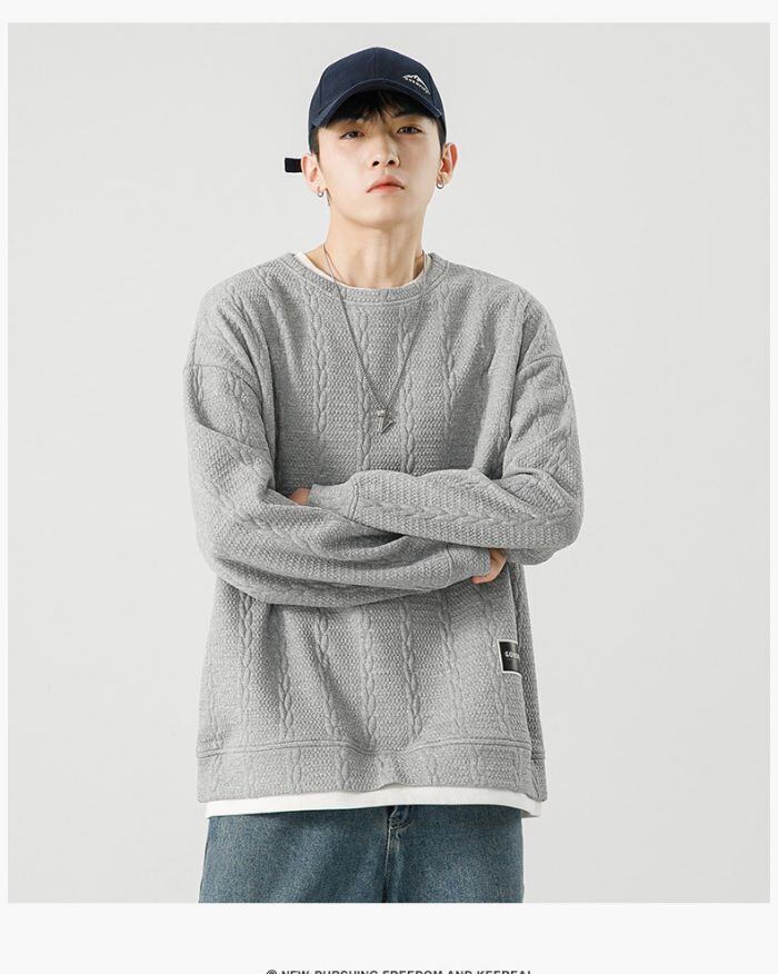 ニットのようなケーブル編みの凹凸があるトップス スウェット トレーナー 続々入荷中Key0: グレー ブラック ホワイト ブルー vertical-key: M L XL 2XL 3XL 4XL