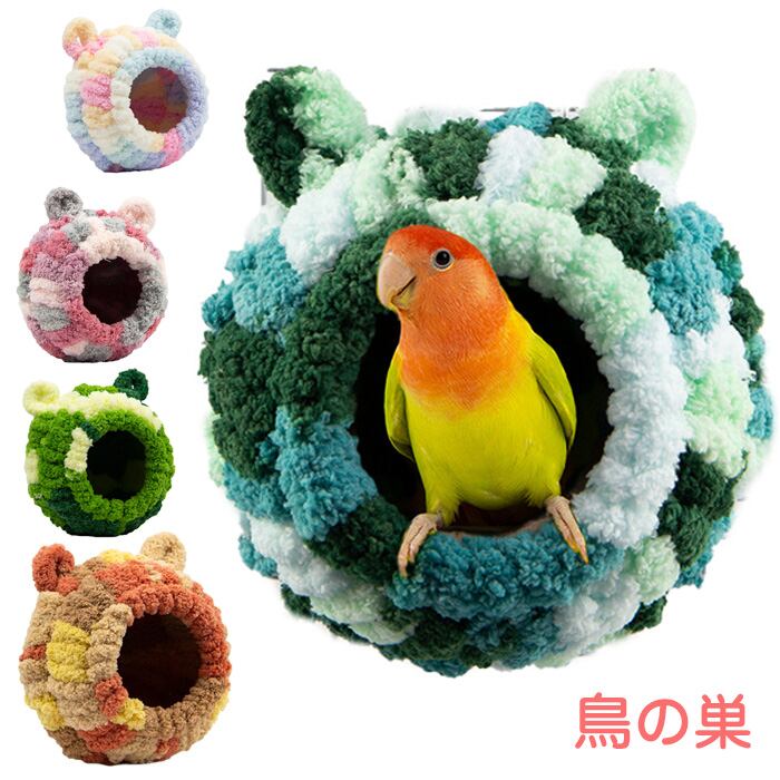 【防寒対策鳥の巣】お家で飼われている鳥さんは、寒さに弱いため、暖かくしてあげることが大切です。手編みで通気性の良い生地を使用しており、ペットを冷気から守りながら保温してくれます。