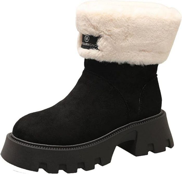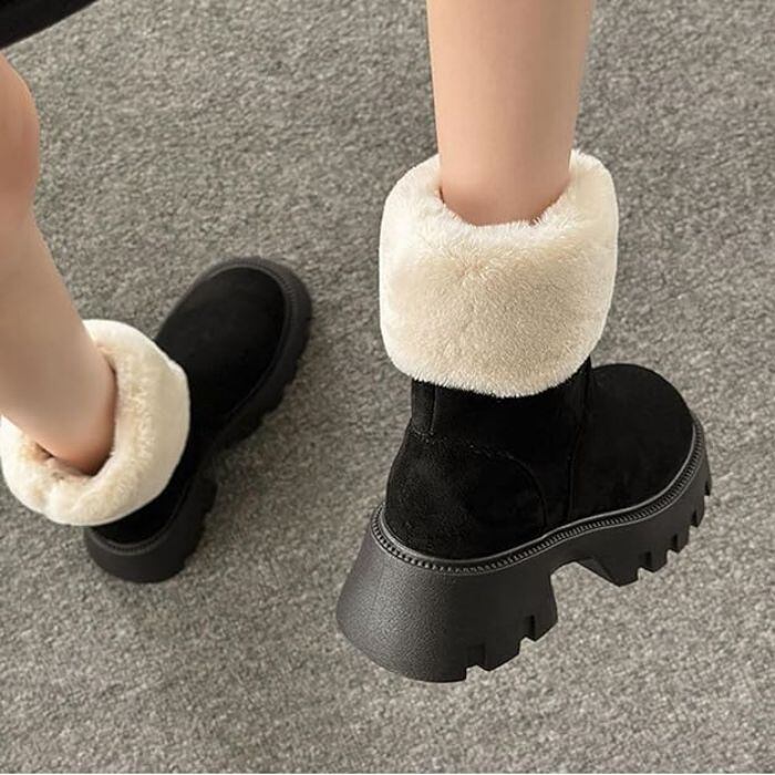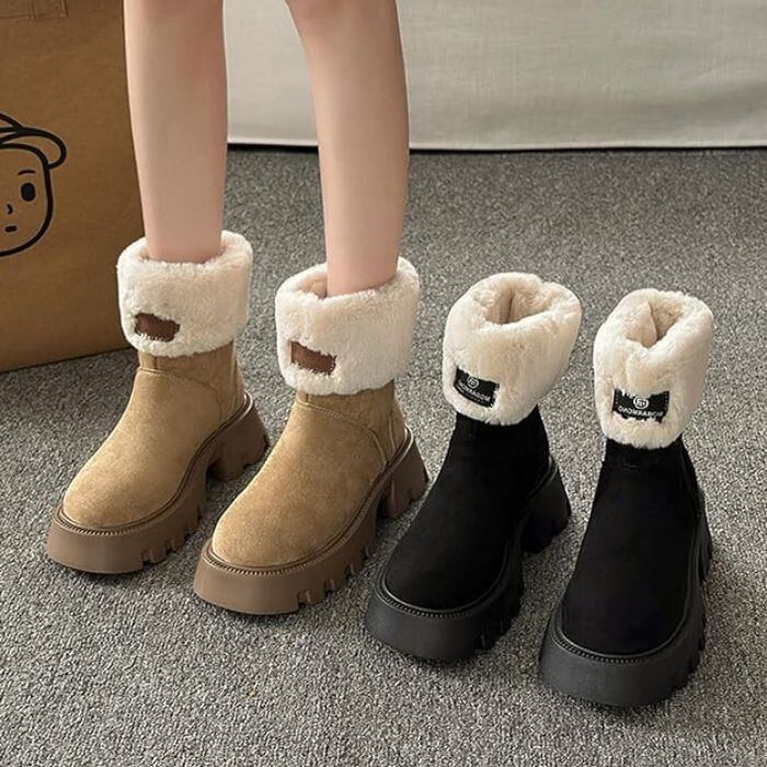 雪対策 雪用 ムートンブーツ レディース スリッポン 太めヒール 身長アップ ファー ショート丈靴 レディース靴 ブーツ その他