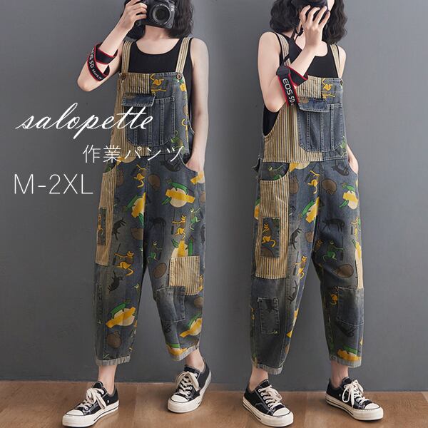 サロペット パンツ レディース オーバーオール カジュアル バックポケット ワイド ボトムス ストラップ 春 秋 冬 デニム ワークマン ワークパンツ つなぎ 作業ズボン ゆったり オールインワン 作