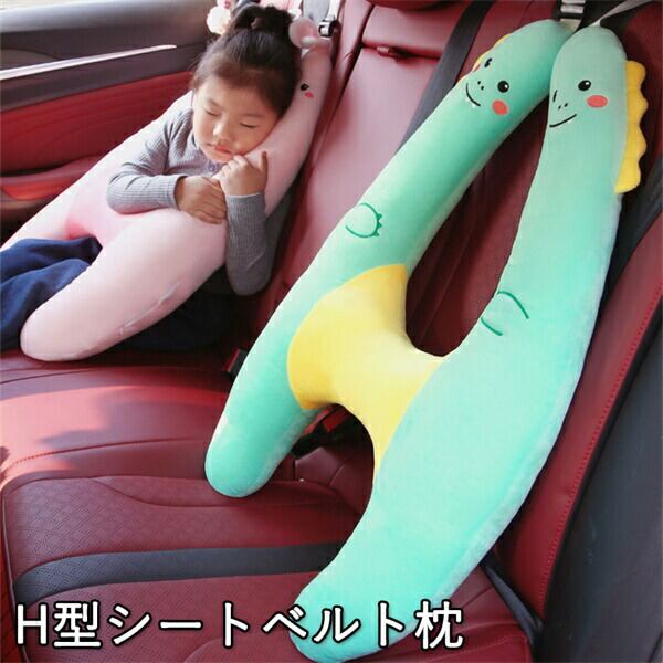 H型シートベルト シートベルトクッション ワンタッチ取付簡単 カバー 子供用 高弾力 高さ調節可 位置調節 車用ステッカー ドライブ首保護 ふわふわ お出かけ 枕車の首枕 車用パッド 睡眠 カー用品